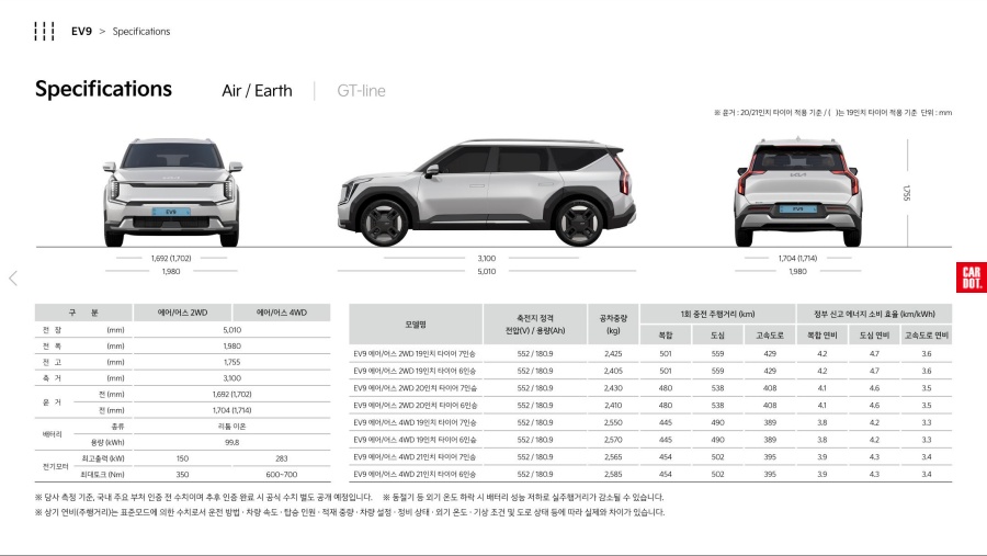 기아의 준대형전기SUV가 가격표와 세부사양 카탈로그를 공개하였습니다. 여러가지로 이슈가 되고 있는 EV9의 옵션과 신기술이 주목받고 있는데요. 얼마나 가치가 있는 차인지 아래의 카탈로그와 가격표를 통해서 확인해보세요.